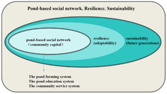 The findings indicate that the resilience of the Hakka settlement is underpinned by the pond farming system, the pond education system, and the community service system, which consist of different categories of community capital and are interconnected as a pond-based social network, linking residents and the community in multiple ways. Promoting community resilience toward community health and well-being through developing categories of community capital is obviously an important topic for environmental, economic, social, and other reasons. Such community development is context-reliant and differs from place to place. Thus, a Hakka settlement could be an appropriate research context for better exploring the specific characteristics and resources that link to each other, and how they could evolve to create a more resilient environment. Further research is recommended to explore the actors participating in the complex, dynamic systems of local communities, such as driving and restraining forces for community resilience in a disadvantaged community.