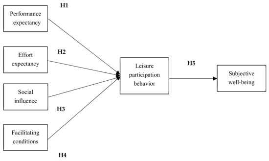 This section addresses how leisure participation behavior is correlated with antecedent variables (i.e., performance expectancy, effort expectancy, social influence, facilitating conditions) and how leisure participation behavior is associated with subjective well-being. Previous studies which relate to the proposed variables are also discussed.