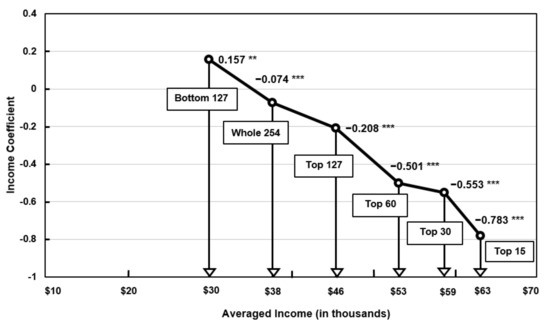 Figure 1 shows that the income coefficient for the top 15 highest-income subgroup with an average income of