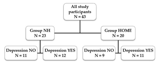 Study group—Geriatric Depression Scale (GDS) scores ≤ 9 points—Depression NO, score ≥ 10 points—Depression YES.