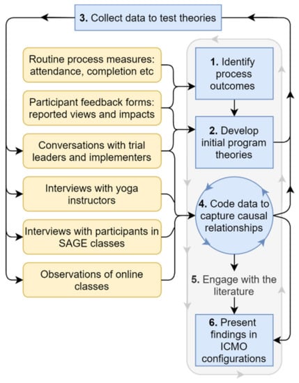 Haynes, A.; Gilchrist, H.; Oliveira, J.S.; Tiedemann, A. Using Realist Evaluation to Understand Process Outcomes in a COVID-19-Impacted Yoga Intervention Trial: A Worked Example. Int. J. Environ. Res. Public Health 2021, 18, 9065. https://doi.org/10.3390/ijerph18179065