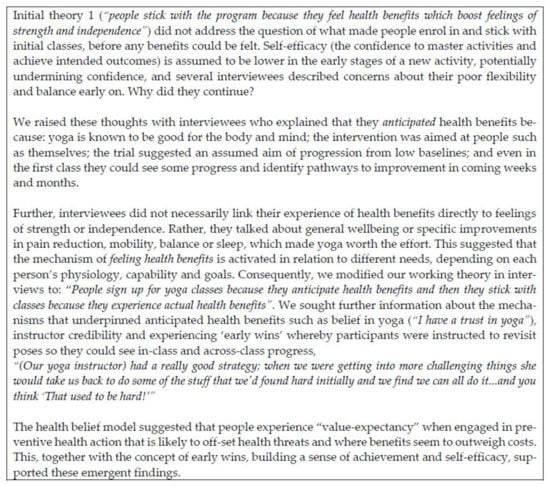 APA StyleHaynes, A., Gilchrist, H., Oliveira, J. S., & Tiedemann, A. (2021). Using Realist Evaluation to Understand Process Outcomes in a COVID-19-Impacted Yoga Intervention Trial: A Worked Example. International Journal of Environmental Research and Public Health, 18(17), 9065. https://doi.org/10.3390/ijerph18179065