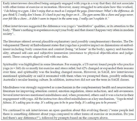 - Piran, N.; Neumark-Sztainer, D. Yoga and the experience of embodiment: A discussion of possible links. Eat. Disord. 2020, 28, 330–348. [Google Scholar] [CrossRef]