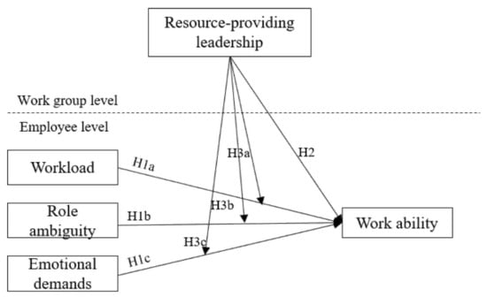 The overall aim of the present study is to investigate how specific demands that are prevalent in female-dominated sectors relate to work ability and how resource-providing leadership at the group level affects this relationship (see Figure 1 for an overview of the conceptual model). In line with existing research [7,14,15], this study investigates workload, role ambiguity, and emotional demands, presenting demands that might be particularly relevant for employees in female-dominated sectors. More specifically, the following hypotheses are investigated: