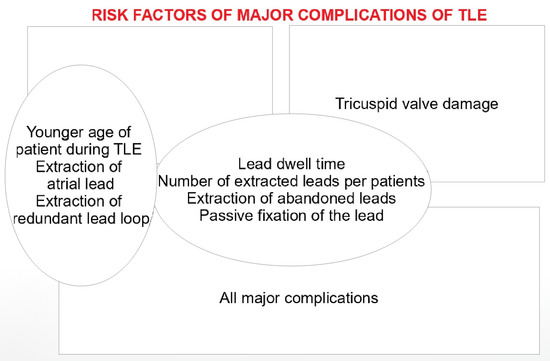 - Jacheć, W.; Polewczyk, A.; Polewczyk, M.; Tomasik, A.; Janion, M.; Kutarski, A. Risk Factors Predicting Complications of Transvenous Lead Extraction. Biomed Res. Int. 2018, 2018, 8796704. [Google Scholar] [CrossRef] [PubMed]