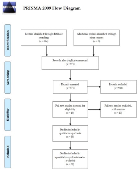 - Moher, D.; Liberati, A.; Tetzlaff, J.; Altman, D.G. Preferred reporting items for systematic reviews and meta-analyses: The PRISMA Statement. Open Med. 2009, 3, e123–e130. [Google Scholar] [PubMed]