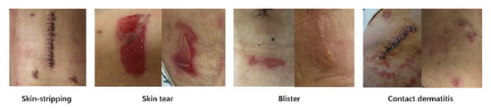 - Fumarola, S.; Allaway, R.; Callaghan, R.; Collier, M.; Downie, F.; Geraghty, J.; Kiernan, S.; Spratt, F.; Bianchi, J.; Bethell, E.; et al. Overlooked and underestimated: Medical adhesive-related skin injuries. J. Wound Care 2020, 29, S1–S24. [Google Scholar] [CrossRef] [PubMed]