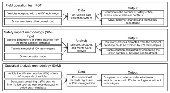 A typical research process using statistical analysis methodology (SAM) includes associating the vehicle identification number (VIN) of tens of thousands of vehicles with databases containing traffic crash information such as insurance databases or police crash databases. Then, Cox regression or Poisson regression is used to compare the crash rate per vehicle between vehicle models with and without ICV technologies. With the support provided by an automobile manufacturers, the vehicle identification number (VIN) can be decoded to provide the type of ICV technologies equipped on the vehicle. The insurance database and police crash database contain the details of the crash, such as speed limit, weather, road surface condition, and vehicle type.
