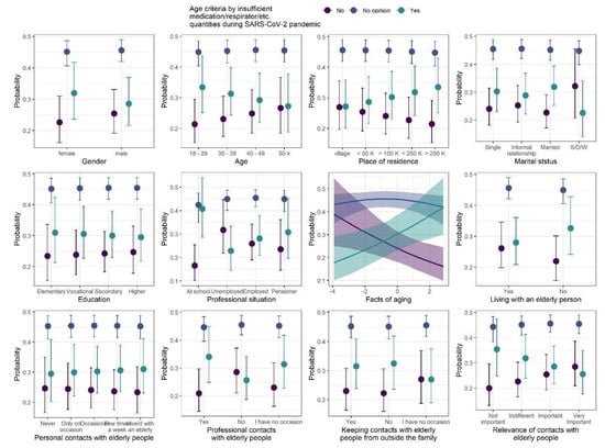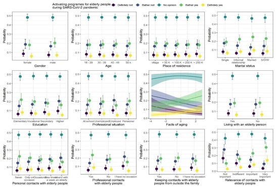 We used R 4.0.2 (Bell Laboratories, Murray Hill, NJ, USA) to analyse the data []. To model the responses to the questions regarding policies related to elderly people during COVID-19 pandemic, a Bayesian ordinal regression was used, suitable for analyzing ordered categorical data []. In each of the analyses, the “no opinion” response was assumed to be equivalent to neutral attitude and constituted a midpoint of the scale. Ordered categorical predictors were coded with orthogonal linear contrast, unordered categorical predictors were coded with sum-to-zero contrast and continuous predictors were entered into a model on a standardized scale.