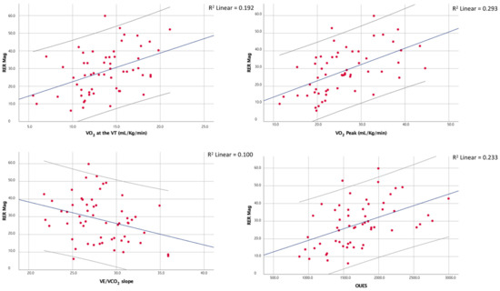Moreover, although the RER max correlated with the peak RER (ρ = 0.50; p < 0.01), the latter showed no significant correlation with the RER mag. The main correlations of the RER mag are shown in Figure 2.