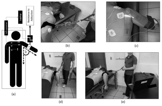 - Contemori, S.; Panichi, R.; Biscarini, A. Effects of scapular retraction/protraction position and scapular elevation on shoulder girdle muscle activity during glenohumeral abduction. Hum. Mov. Sci. 2019, 64, 55–66. [Google Scholar] [CrossRef]
