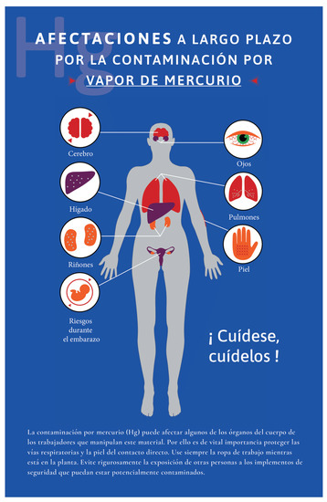 Public health infographics designed based on the findings of this study to communicate body systems affected by mercury vapor exposure. Infographic created by Maria Carolina Cuestas Moncada, Juan David Reyes Estupiñan, and David Felipe Salazar Chiguasuque and reproduced with permission.