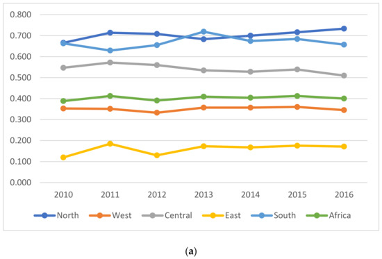 4.4. Ecological Efficiency Improvements in Africa from 2010 to 2016