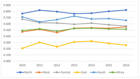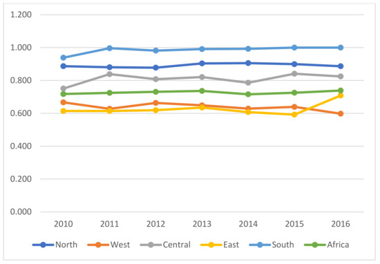 4.3. Technology Gap Ratio (TGR) Regarding DSTFEE in Africa from 2010 to 2016