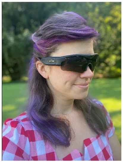 The Gogloo E7 SMART is a state-of-the-art WVD indistinguishable from a pair of normal sunglasses (Figure 1). The camera is discretely centered in the bridge of the glasses which provides (Gogloo E7 SMART Eyewear, Model Number E7B0100 []).