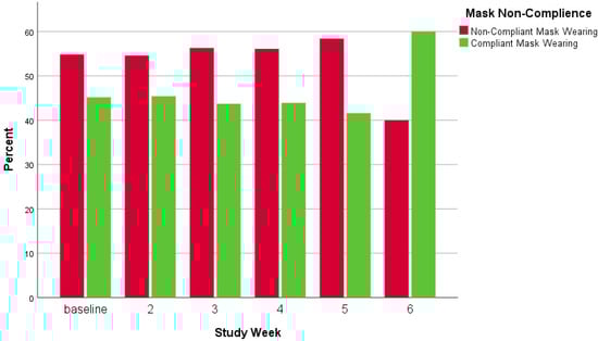 Mask wearing compliance by study week.
