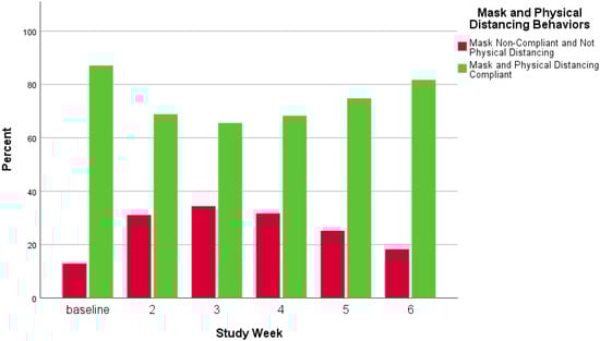 Mask and physical distancing behaviors combined by study week.