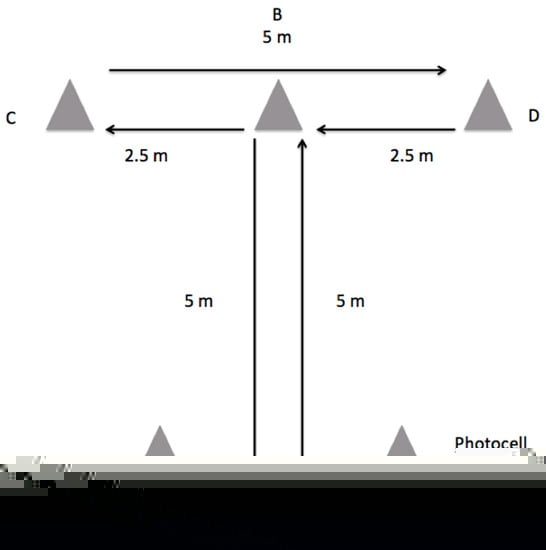 - Sassi, R.H.; Dardouri, W.; Yahmed, M.H.; Gmada, N.; Mahfoudhi, M.E.; Gharbi, Z. Relative and absolute reliability of a modified agility T-test and its relationship with vertical jump and straight sprint. J. Strength Cond. Res. 2009, 23, 1644–1651. [Google Scholar] [CrossRef]