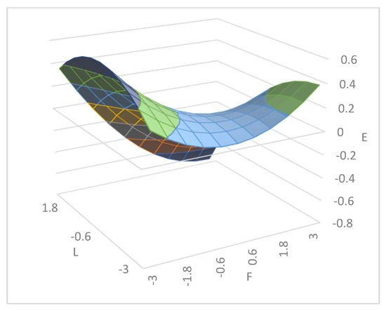 The effect of supervisor–subordinate congruence in honesty on the subordinates’ emotional exhaustion. Note: L = Leaders’ honesty; F = Followers’ honesty; E = Emotional exhaustion.
