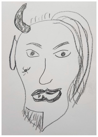 “What I drew is what concerns me the most and touches me negatively, which is the effect as if he would have a mask on his face (…). I always have to think when I talk to him or when I get in touch with him whether there’s something going on. He just looks glassy-eyed. It’s not that there’s something wrong or that something has happened (…) It is somehow difficult for him to express that he is there for the other person in an empathic way. And the connection is somehow interrupted. But maybe that has to do with me too. I react very personally”.(FC6)