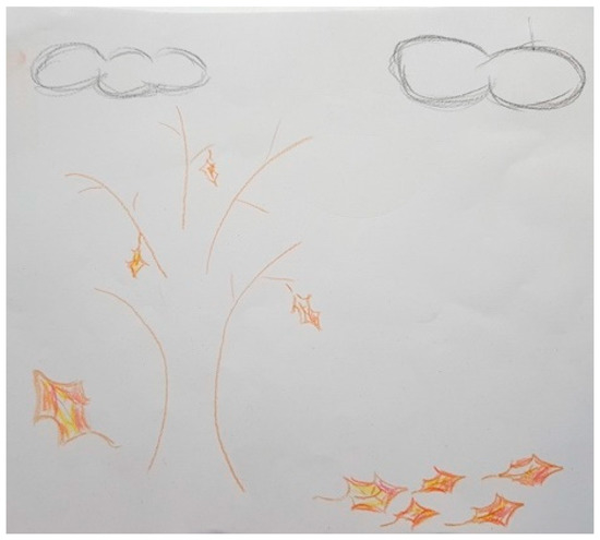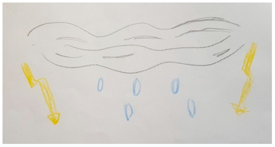Several participants, both patients and FCs, represented PD in their drawings with different figures that show the impact of the disease on their lives. These figures are very varied and range from the representation of PD as a creature that is always there, like in Figure 3, Figure 4 and Figure 5, to describing PD by analogy to the weather or the seasons of the year, like in Figure 6 and Figure 7.