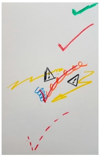 Some patients visually perceive PD as the lack of movement or freedom (e.g., Figure 8 and Figure 9), rather than as concrete and defined figures, whose symbolism explains the impact on their life (e.g., Figure 3, Figure 4, Figure 5, Figure 6 and Figure 7).