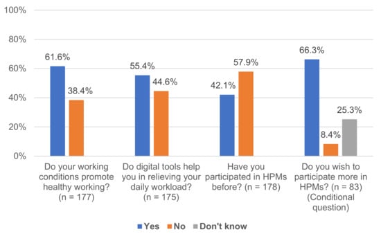 3.2. Quantitative Descriptive Findings: Working Conditions and HPM Participation