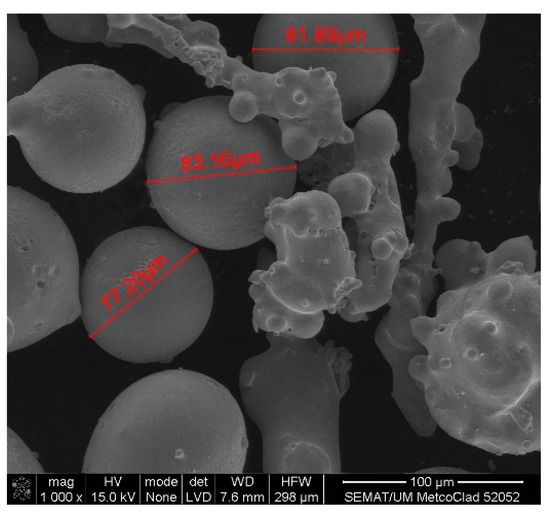 Data for this study were collected in a company specialized in technical coatings for industrial applications using laser cladding. This equipment can use different inert gas-atomized powders, specifically designed for laser cladding applications. Therefore, two raw materials were considered: a cobalt–chromium–silicon–carbon alloy (Powder 1) and a tungsten carbide–nickel alloy (Powder 2) (Figure 1).