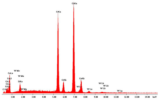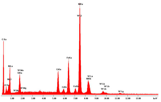 EDS analysis: sample collected during Trial 2 with the tungsten carbide–nickel alloy.