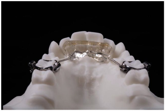 Subjects were treated in two phases. The first phase comprised the Austro Repositioner appliance, according to a previously described protocol [10] (Figure 1), specially designed by brachyfacial patients; in brief, the acrylic resin wedge was extended to the upper incisors, and in this anterior segment, the wedge was 1.0–1.5 mm thicker.