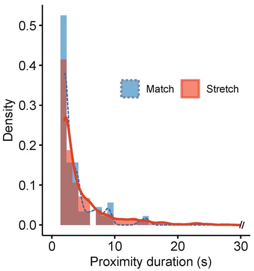 Density plot of the duration for each proximity ID during match time and stretching time.