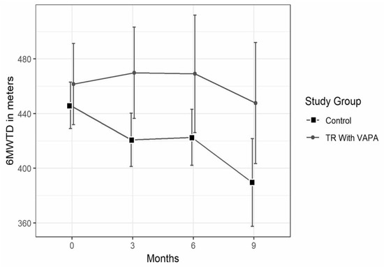 | 6MWD (m), mean (SD) | 461.5 (115.0) | 446 (63.6) |