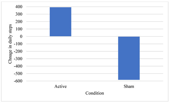 Change in mean daily steps per day by condition.