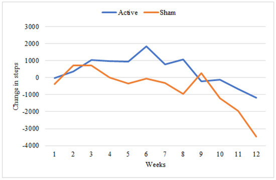 Weekly mean change in number of daily steps.