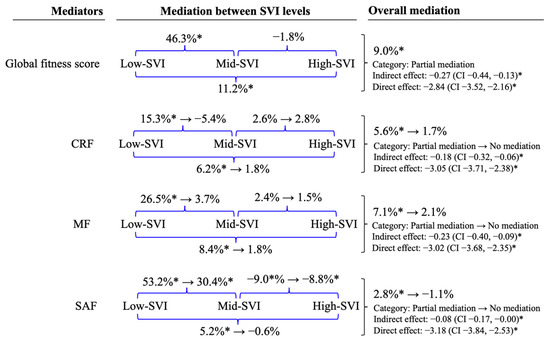 - Andersen, M.P.; Valeri, L.; Starkopf, L.; Mortensen, R.N.; Sessa, M.; Kragholm, K.H.; Vardinghus-Nielsen, H.; Bøggild, H.; Lange, T.; Torp-Pedersen, C. The mediating effect of pupils’ physical fitness on the relationship between family socioeconomic status and academic achievement in a danish school cohort. Sports Med. 2019, 49, 1291–1301. [Google Scholar] [CrossRef]