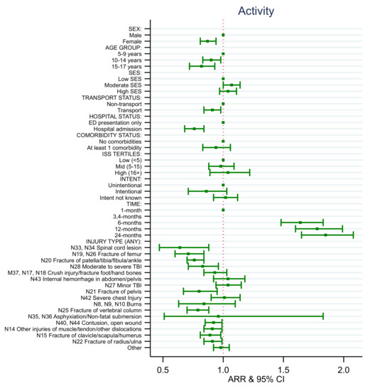 - Mitchell, R.J.; Curtis, K.; Braithwaite, J. Health outcomes and costs for injured young people hospitalised with and without chronic health conditions. Injury 2017, 48, 1776–1783. [Google Scholar] [CrossRef]