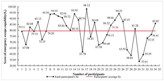Thirty-four participants’ score of emergency escape capability (denoted as Sc below) are plotted in Figure 6, in which the black points represent each participant’s Sc, and the red line represents all the participants’ average Sc.