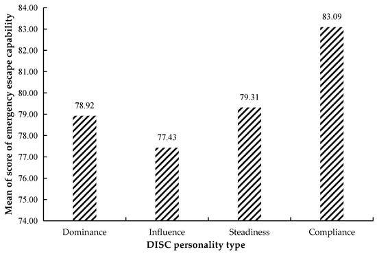 The mean score of emergency escape capability in the DISC personality type.