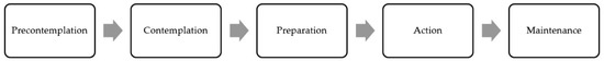 - Prochaska, J.O.; Norcross, J.C.; DiClemente, C.C. Changing for Good: The Revolutionary Program that Explains the Six Stages of Change and Teaches You How to Free Yourself from Bad Habits; W. Morrow: New York, NY, USA, 1994; ISBN 978-0688112639. [Google Scholar]