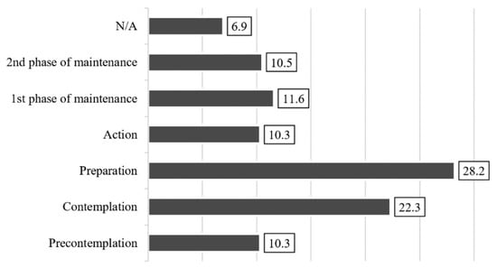 Relying on their own subjective perception, 62.9% of university students tend to get their information from online sources [52,64]. According to the transtheoretical model of change (TTM) [65,66,67], one third (32.4%) of university students are at the “action” and “maintenance” stages in their transition to healthy eating. All other university students (50.5%) are at the “contemplation” or “preparation” stages, which means that they intend to change their eating habits.