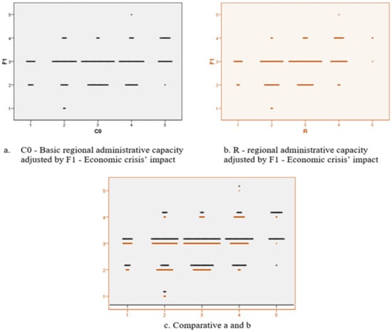 We designed an econometric model in order to test the correlation between the previously presented variables, with the title of global phenomena with negative impact, namely the economic crisis, the refugees and the migration, and not lastly, the impact of the COVID-19 pandemic. These variables allowed the calculation of the scalar coefficients of regional administrative capacity in the absence of the disturbing factors (C0) and in the presence of each individual (C1–C4) in order to finally allow the calculation of the regional administrative capacity versatility under the current crisis conditions. The definitions of the aforementioned terms are: