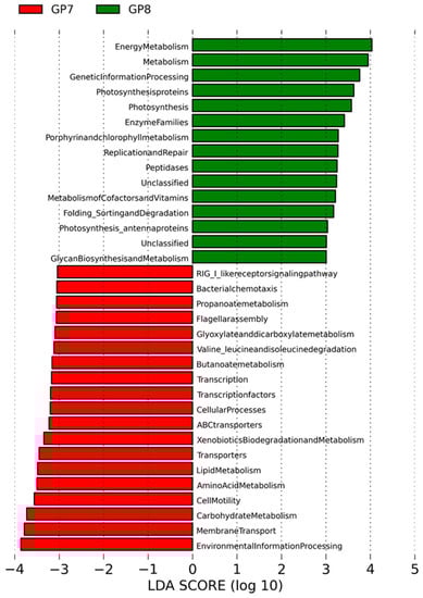 - Langille, M.G.; Zaneveld, J.; Caporaso, J.G.; McDonald, D.; Knights, D.; Reyes, J.A.; Clemente, J.C.; Burkepile, D.E.; Thurber, R.L.V.; Knight, R.; et al. Predictive functional profiling of microbial communities using 16S rRNA marker gene sequences. Nat. Biotechnol. 2013, 31, 814–821. [Google Scholar] [CrossRef] [PubMed]