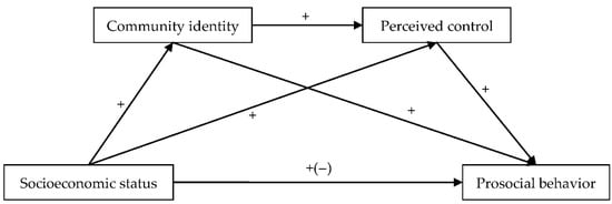 How does socioeconomic status affect prosocial behavior? Bronfenbrenner’s ecosystem theory [,] points out that a person’s development is affected, not only by personal characteristics, but also by microsystems. Moreover, socioeconomic status is a factor of the microsystem, and community identity is a personal characteristic variable. On the one hand, the social identity approach came from social identity theory [,], and the self-categorization theory [] believes that groups can shape individual’s psychology by internalizing their sense of self, and pointed out that belonging to a group affects an individuals’ cognition, emotion, and behavior []. The social cure perspective, derived from the social identity approach, believes that group identity is the basis of a volunteers’ motivation to participate in voluntary activities [], which could increase environmental protection behavior []. It is well-known that social identity can effectively predict prosocial behavior [,,]. Community identity, as a special type of social identity [,], refers to the recognition, approval, and value of community members for the common values of the community, including emotional identity and functional identity. The former is embodied in whether residents care about other people’s views about their own community, whether they have special feelings for the community, and so on. The latter is reflected in the residents’ recognition of the convenience of the community, the level of management, the environmental conditions, and whether the community can meet the needs of the family []. Yang and Xin [] explored the influence of community identity on positive intentions, in the context of time pressure, and found that people with higher community identity had a higher level of intention to help others than those with lower community identity. Fritsche et al. [] summarized that community identity would increase individuals’ support for environmental protection behaviors. A recent study [] also found that the intensity of people’s identity with the local community had a positive predictive effect on their willingness to participate in prosocial normative behaviors in the community. Researchers [] conducted a two-wave longitudinal online survey during the COVID-19 pandemic, and found volunteer role identity at T1 (pre-pandemic) positively affected perceptions of volunteer–beneficiary intergroup closeness at T1, which also in turn affected community identity at T1. This, in turn, positively predicted COVID-19 collaborative assistance for T2 (3 months later). On the other hand, compared with those with upper status, lower-status people were more likely to live in an environment of higher crime rates, parental conflict, and community violence, which was not conducive to the formation of community identity []. Furthermore, some empirical studies [,] have pointed out that there was a significant positive correlation between socioeconomic status and community identity. Moreover, Wang et al. [] found community identity played a mediating role between socioeconomic status and altruistic behavior.