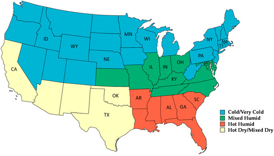 - Baechler, M.C.; Gilbride, T.L.; Cole, P.C.; Hefty, M.G.; Ruiz, K. Building America Best Practices Series—High Performance Technologies: Guide to Determining Climate Regions by Country; U.S. Department of Energy: Washington, DC, USA, 2015; Volume 7, p. 3.