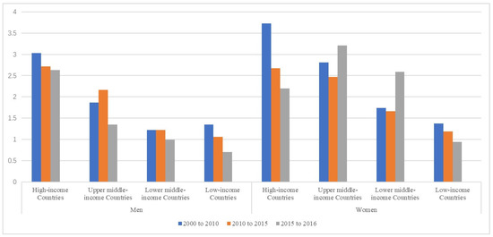 3.2. Gender Disparities among Geographic Regions and Income Groups