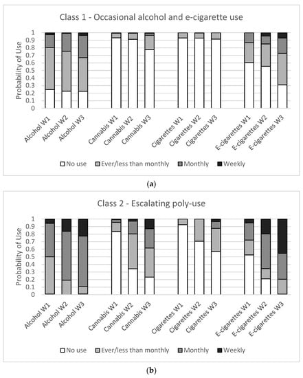 - Choi, H.J.; Lu, Y.; Schulte, M.; Temple, J.R. Adolescent substance use: Latent class and transition analysis. Addict. Behav. 2018, 77, 160–165. [Google Scholar] [CrossRef] [PubMed]