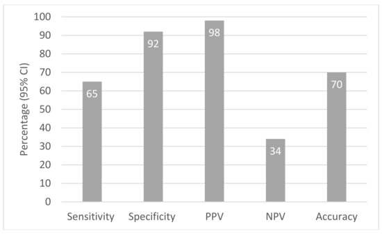 - MedCalc Software Ltd. Diagnostic Test Evaluation Calculator. (Version 20.010). MedCalc Software Ltd.: Ostend, Belgium. Available online: https://www.medcalc.org/calc/diagnostic_test.php (accessed on 26 August 2021).