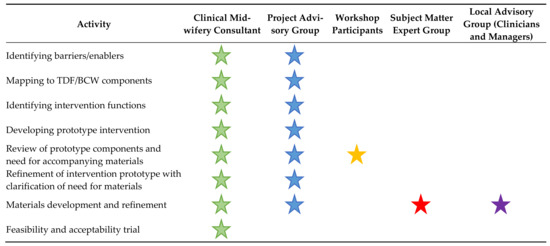 In Australia, each Local Health District has a Clinical Midwifery Consultant, a senior health service position whose role is to provide strategic and operational leadership in maternity services to ensure they are contemporary, evidence informed and responsive to the requirements of the local populations. As described above, the local Clinical Midwifery Consultant was a core member of the research team developing the intervention and therefore the materials.