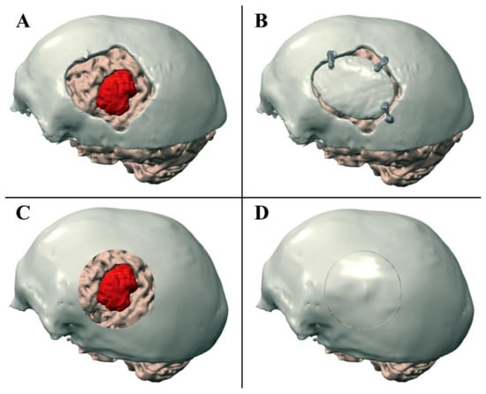 - Oishi, T.; Sameshima, T.; Totsuka, T.; Yamasaki, T.; Koizumi, S.; Namba, H. Cosmetic and Neuroprotective Placement of Custom-Made Ultra-High-Molecular-Weight Polyethylene Cranial Plate (SKULPIO) in Single-Step Surgery: Technical Note and Case Report. World Neurosurg. 2019, 130, 187–191. [Google Scholar] [CrossRef] [PubMed]
