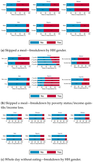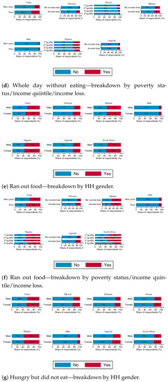 We desegregate the responses to food insecurity indicators by gender of the household head and poverty status of households/income quartiles/whether households suffered a loss in income since the pandemic started (depending on data availability). The data (